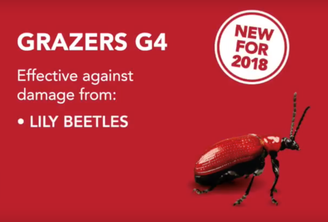 Watch our new video with the NEW G4 nature friendly spray against LILY BEETLE damage in the garden General NewsBy April 12, 2018https://www.youtube.com/watch?v=-Mt8aGSjLqE&pbjreload=10