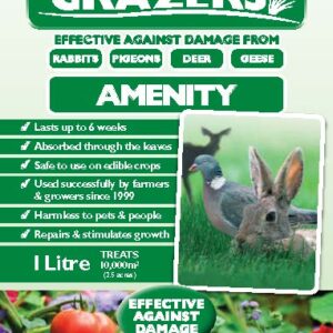 Applied to emerging crops or near ripe fruit and grain effective against damage from grazing mammals and birds, which includes rabbit, deer, mice, vole, squirrel, pigeon, small birds including starling, pheasant, partridge, crow.